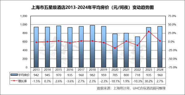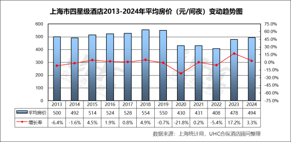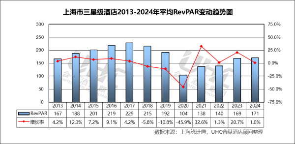 五星级酒店数量在疫情前(2013-2019年)从60家稳步增长至71家,展现了上海作为全球城市对顶级住宿设施的持续需求。疫情期间(2020-2022年)其数量表现出极强的韧性,稳定在71家,显著优于其他星级。这得益于其深厚的客群基础(高端商务、跨国企业)和强大的资本支撑。然而,2023-2024年,其数量从61家进一步降至50家。这一“滞后下降”并非衰退信号,而更可能是市场出清与主动升级的体现:部分老旧或定位不佳的五星级物业可能通过“换牌”(如转为豪华五星或生活方式品牌)或资产交易退出统计,市场正向更高质量、更具特色的顶级供给进化。